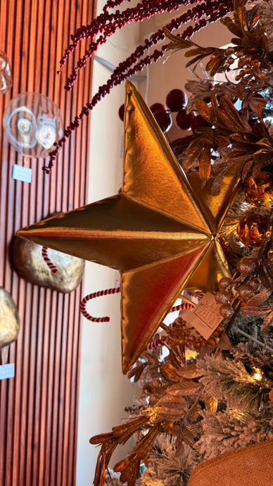 Ilumina tu Navidad con la Estrella Shine, un adorno clásico y elegante en acabado dorado metálico que dará un toque sofisticado a tu árbol o decoración festiva. Su diseño brillante resalta tanto de día como de noche, convirtiéndose en el punto focal perfecto para realzar la magia de la temporada. Disponible en dos tamaños, es ideal para adaptarse a diferentes estilos y espacios.