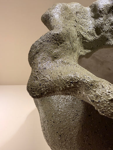 Ideal para exhibir flores secas, ramas o simplemente como objeto escultórico sobre mesas, repisas o consolas. Su tono gris cemento aporta un toque moderno y minimalista que realza la calidez de los espacios.