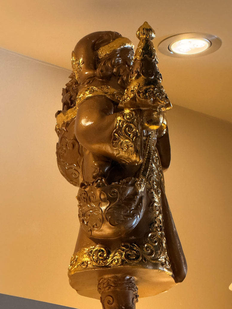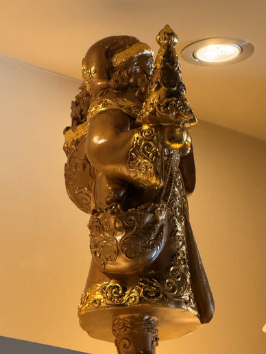 Nuestro Santa Claus Dorado con Brillos ilumina cualquier rincón con su toque festivo y sofisticado. Su acabado metálico con destellos dorados crea una atmósfera cálida y elegante, perfecta para complementar la decoración navideña.