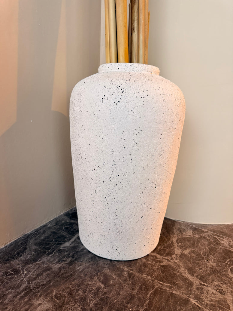 El Tibor Granito Blanco es una pieza decorativa atemporal que aporta equilibrio y sofisticación a cualquier espacio. Su acabado mate con textura tipo granito crea un contraste sutil entre lo orgánico y lo moderno, convirtiéndolo en un acento perfecto para salas, recibidores o estanterías.